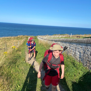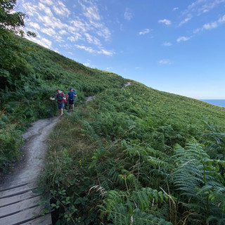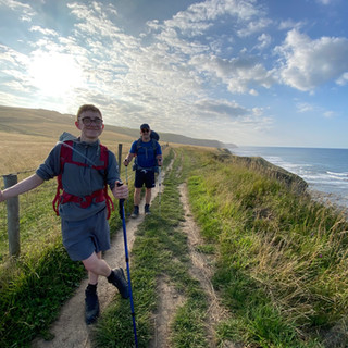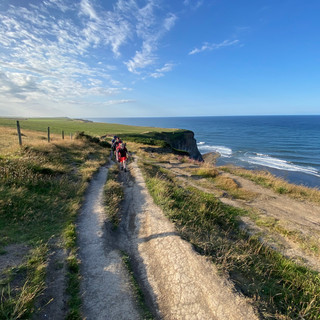 The day started with a cab back from Whitby to Runswick Bay to pick up the trail where we finished yesterday. It was a steep descent to the beach where we found a nice little cafe to stock up on some snacks for today’s 15 miles. We had to wait for about 20 minutes for the tide to go out enough for us to cross onto the beach, some tried too early and were rewarded with a soggy boot for the day.